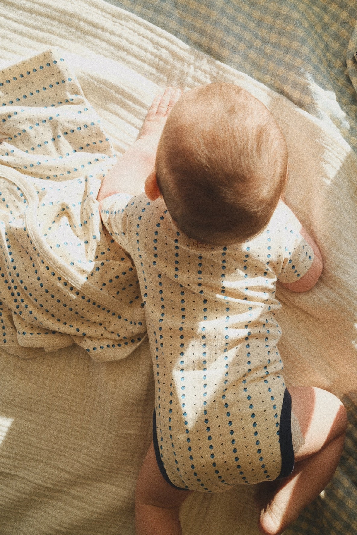 ゆったりとしたシルエットが大人気のオーバーサイズボディスーツ。赤ちゃんの動きを妨げないシルエットで動きやすさ抜群です。