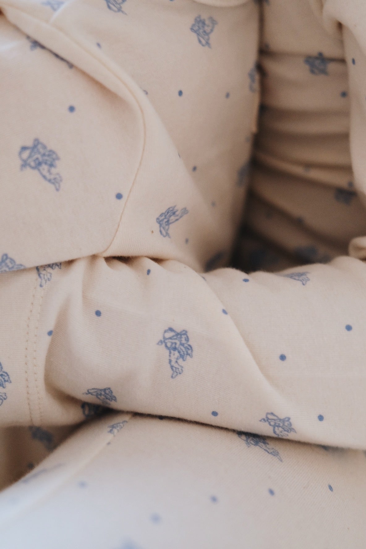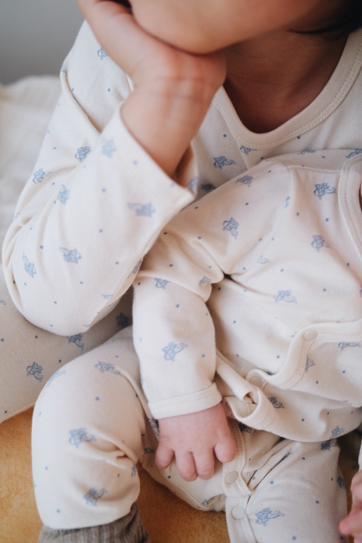 *Since organic cotton is used, small black particles called cotton lint may adhere to the fabric. These are harmless particles that remain until the dead parts of the cotton, such as leaves, stems, and fruits, break down into small pieces and become the final thread. They will decrease with repeated washing.