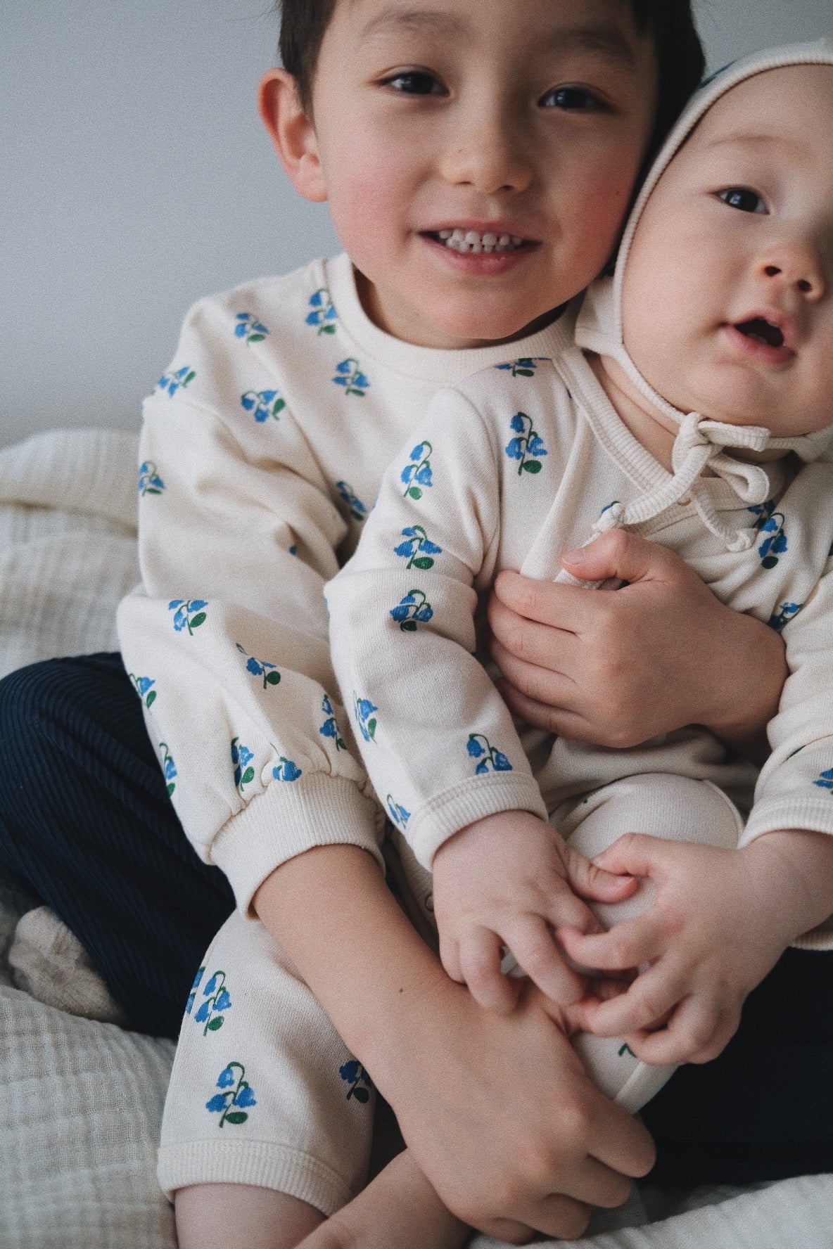 ・アイボリーに鮮やかなブルーのすずらんプリント