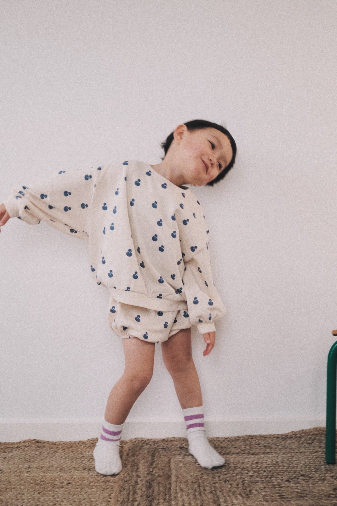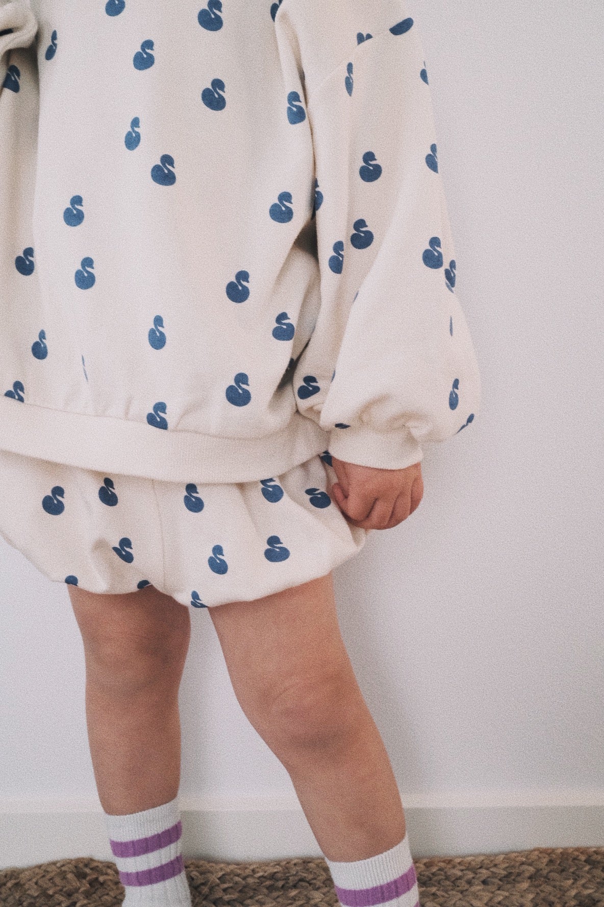 軽い薄めのスウェット生地。デンマークの国鳥として親しまれているスワン(白鳥)をオリジナルモチーフにしてプリント。アイボリーの水辺にネイビーのようなパープルのような色のスワンが泳いでいます♡