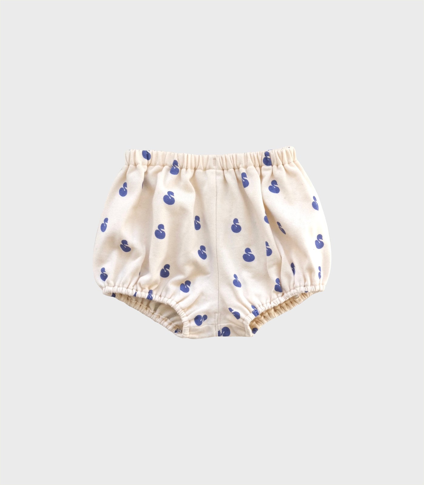 ギャザーがたっぷりと入ったカボチャシルエットのパンツ。ウエスト、裾はゴム仕上げ。
